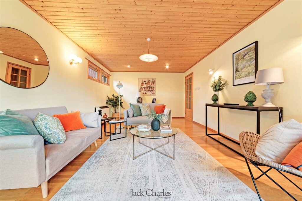 Jack Charles are delighted to offer for sale this wonderful unique detached home set back from the road, designed in the style of a ‘Scandia-Hus. The property is beautifully presented and situated in a highly desirable location and is approached via a driveway, it is triple glazed throughout and you enter at the side into a spacious entrance hall with fitted storage and doors to the ground floor shower room, utility room, kitchen / breakfast room and two good sized reception rooms, the living room has sliding doors to the rear garden and the dining room is at the front of the house with stairs to the first floor. The kitchen is a generous size with space for a table and chairs and has a lovely outlook to the garden.