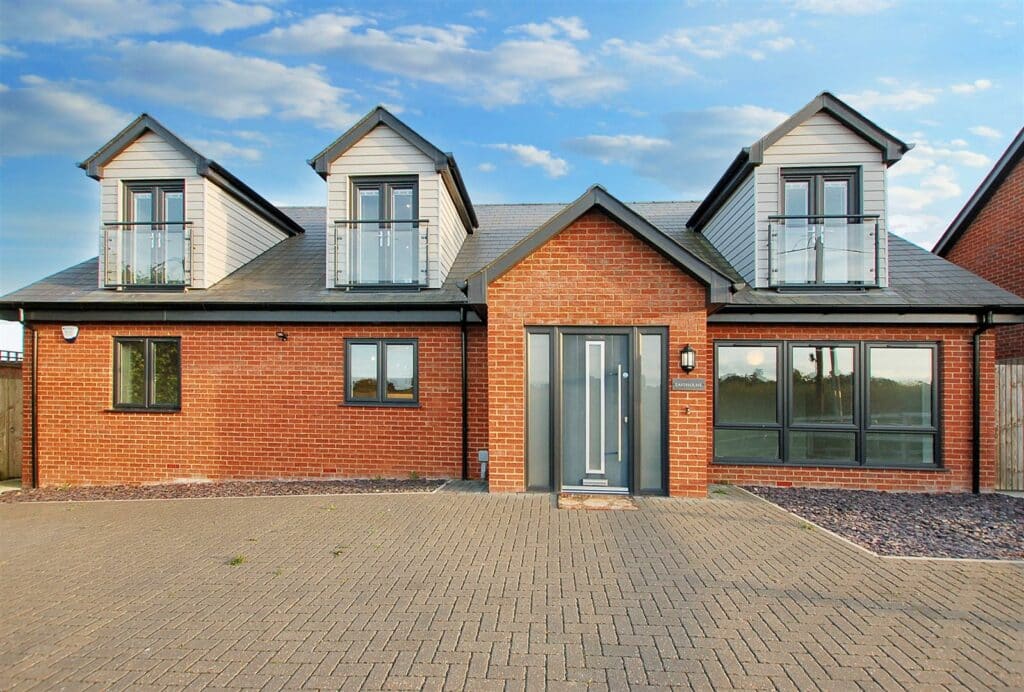 A truly stunning detached newly built home in large gardens with an optional 5 acres. The property is arranged over two floors with 4 ensuite bedrooms, a full-height vaulted entrance and turned stairs. Stunning open plan kitchen / dining / living room with a glazed vaulted family area and two sets of fold-away doors to both the front and side. There is a good sized 2nd reception room that could double up as bedroom 5.