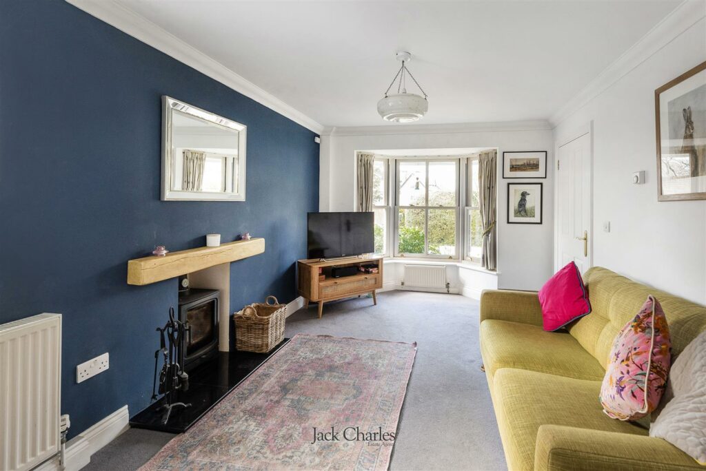 Internally, a bright entrance hall with solid wood parquet flooring leads into a spacious living area, featuring a fireplace and large windows that flood the room with natural light. The layout has been opened up to create a fantastic sociable space, ideal for entertaining. The kitchen is new and well proportioned, with ample storage and space for a breakfast table.