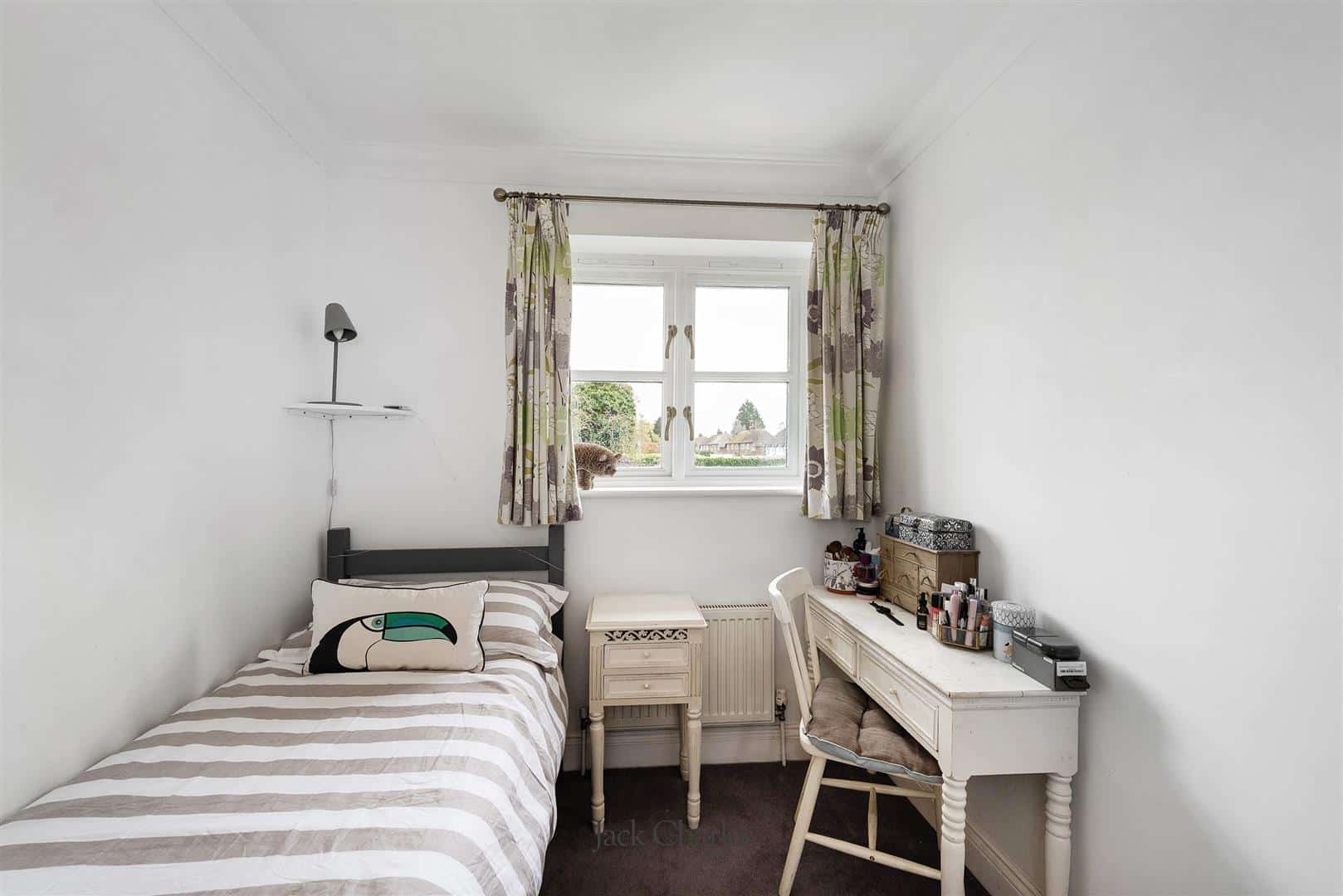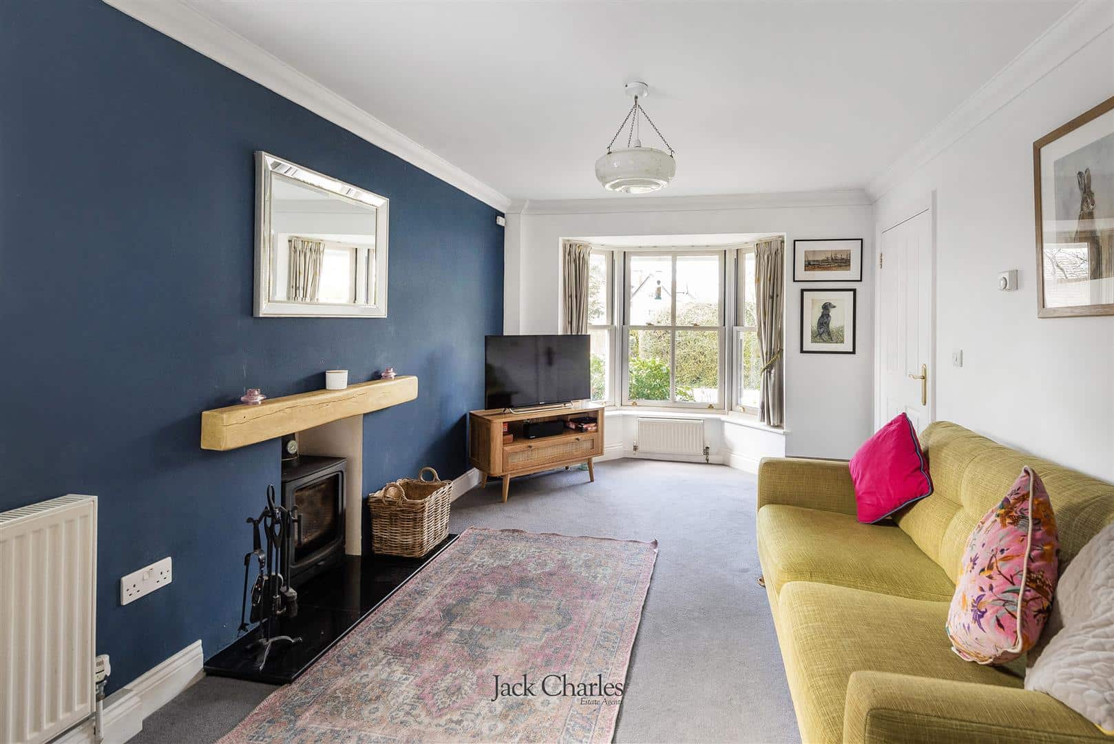 The house offers excellent kerb appeal, with a bay window and canopied entrance. To the side, there is a garage, along with driveway parking for two cars.