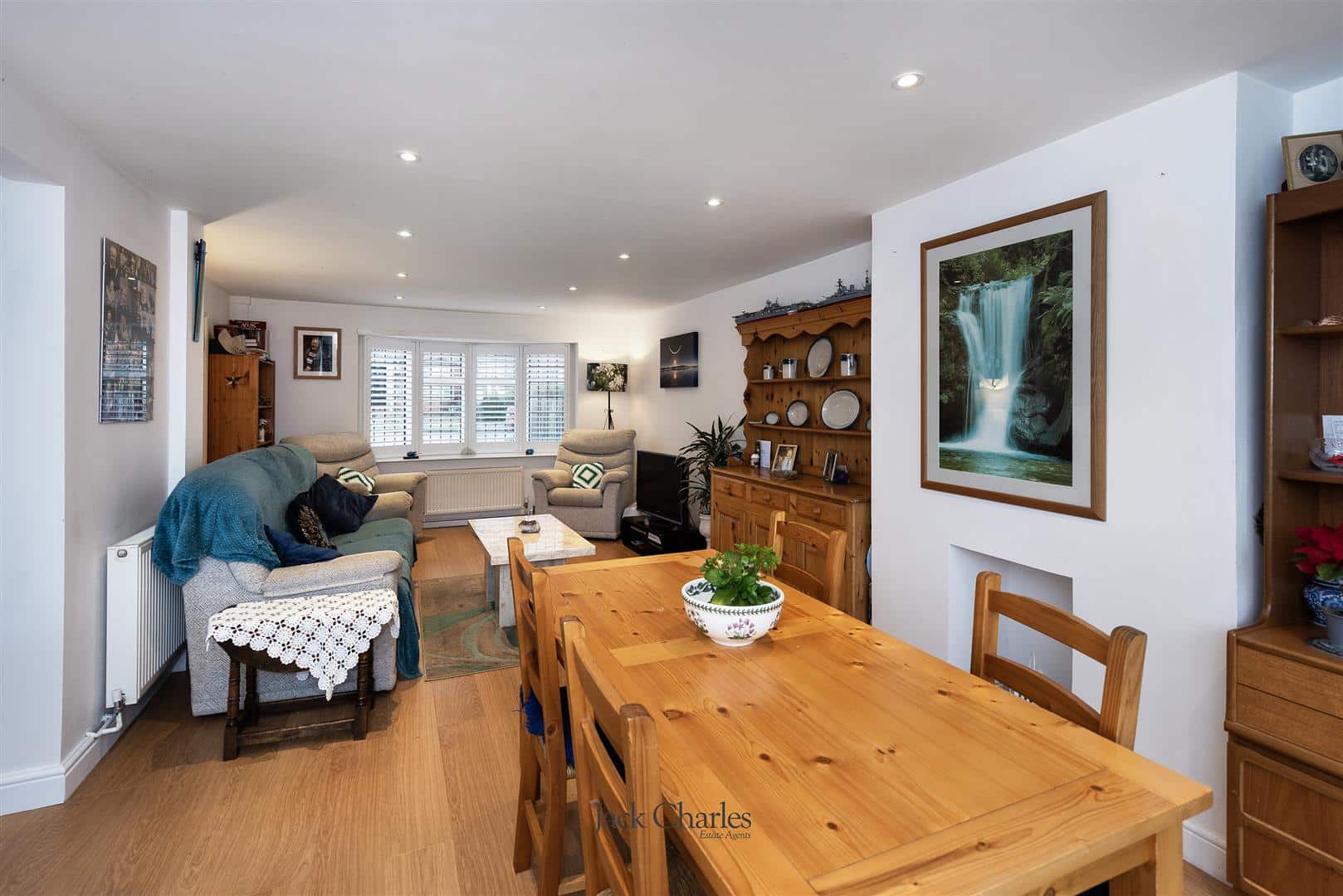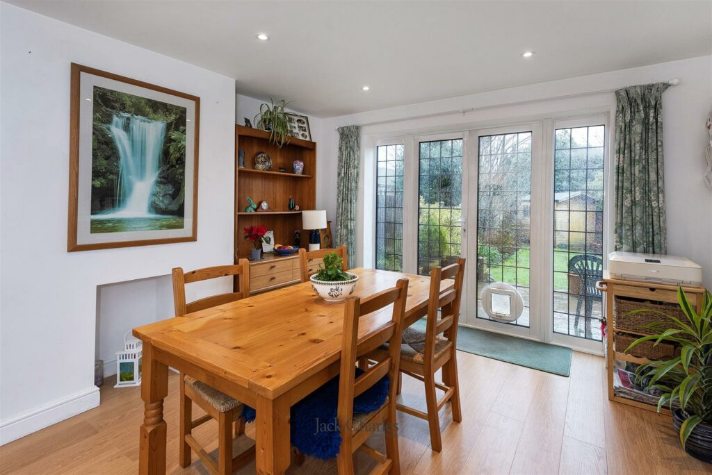 The accommodation is exceptionally well presented throughout and arranged over two floors, offering generous and well balanced living space. The ground floor comprises a welcoming entrance hall, a spacious dual aspect open plan sitting and dining room with French doors opening directly onto the rear garden, and a superb recently renewed fitted kitchen. To the first floor are three bedrooms and a modern family bathroom.