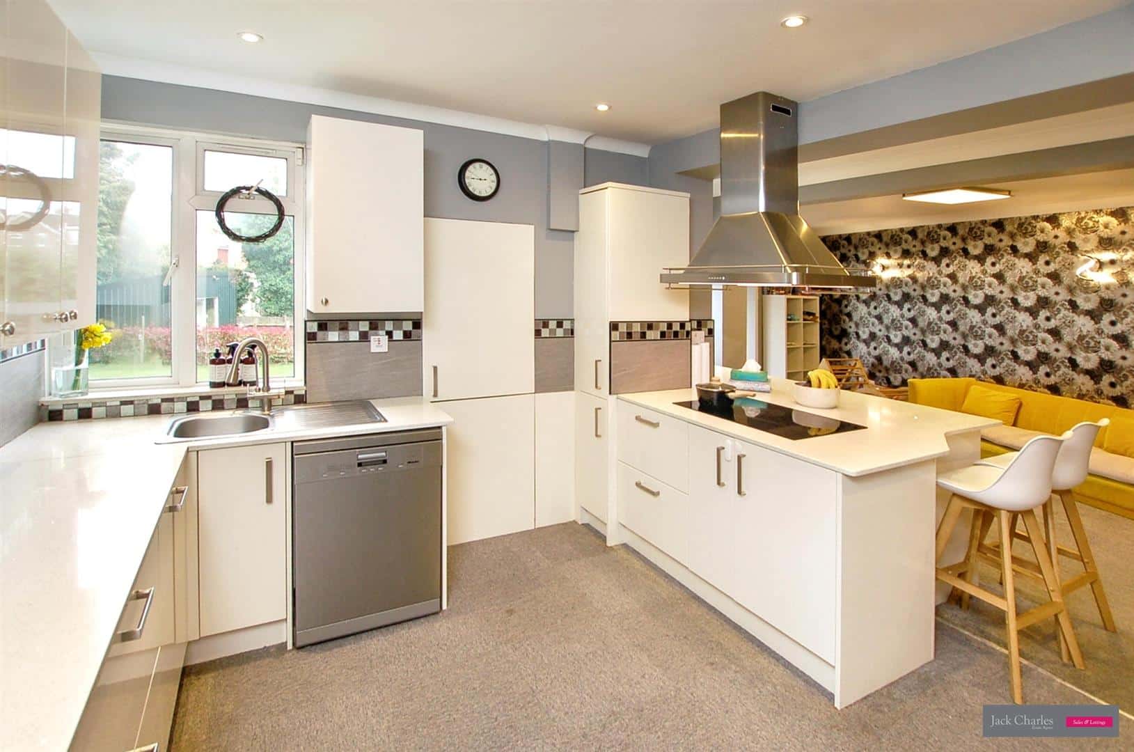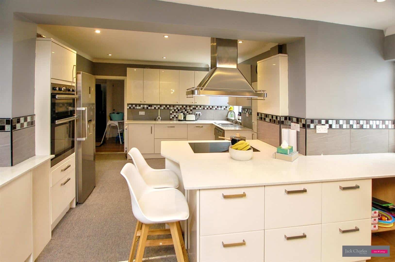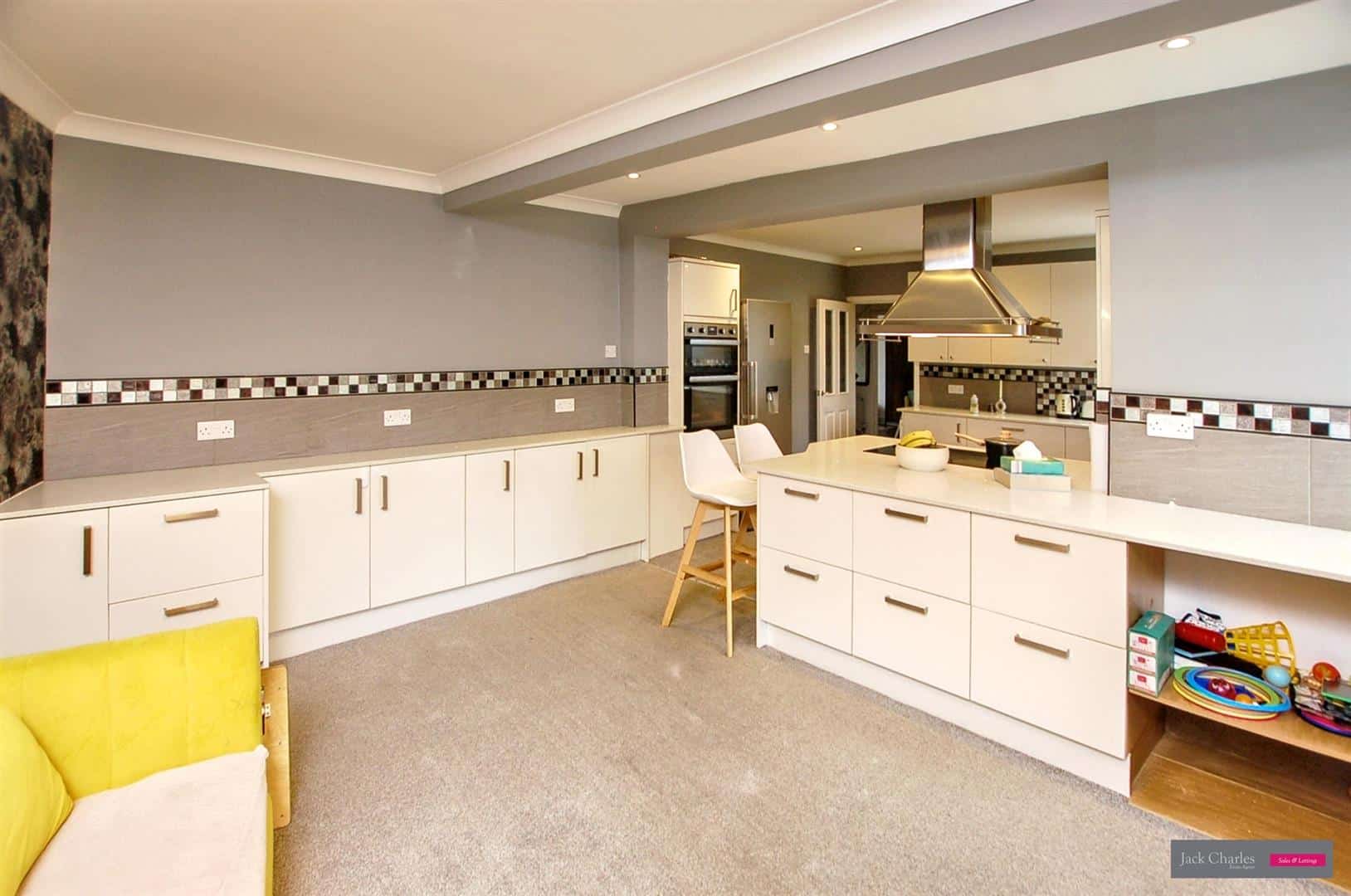 The ground floor boasts a large entrance hall which leads through to a bright, open plan kitchen and dining area, with a sun room positioned to the rear providing additional living space. Also on this level is a generously sized lounge, two well-proportioned bedrooms, and a family bathroom.