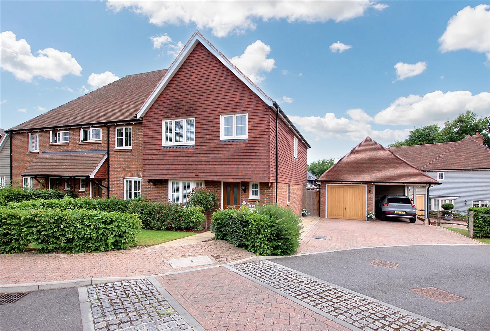 Jack Charles are delighted to present for sale this wonderful home nestled in the charming village of Yalding, this exquisite Millwood designer home offers a perfect blend of modern living and natural beauty. With 3 good sized bedrooms and a wonderful open plan family / dining / sitting room, there is Amtico wood effect flooring throughout the hall and kitchen/breakfast room with bay window overlooking the communal meadow to the front, There are builtin appliances, hob, worktops. The property boasts two well-appointed bathrooms, ensuring convenience for all and a ground floor WC. There is also plenty of storage.