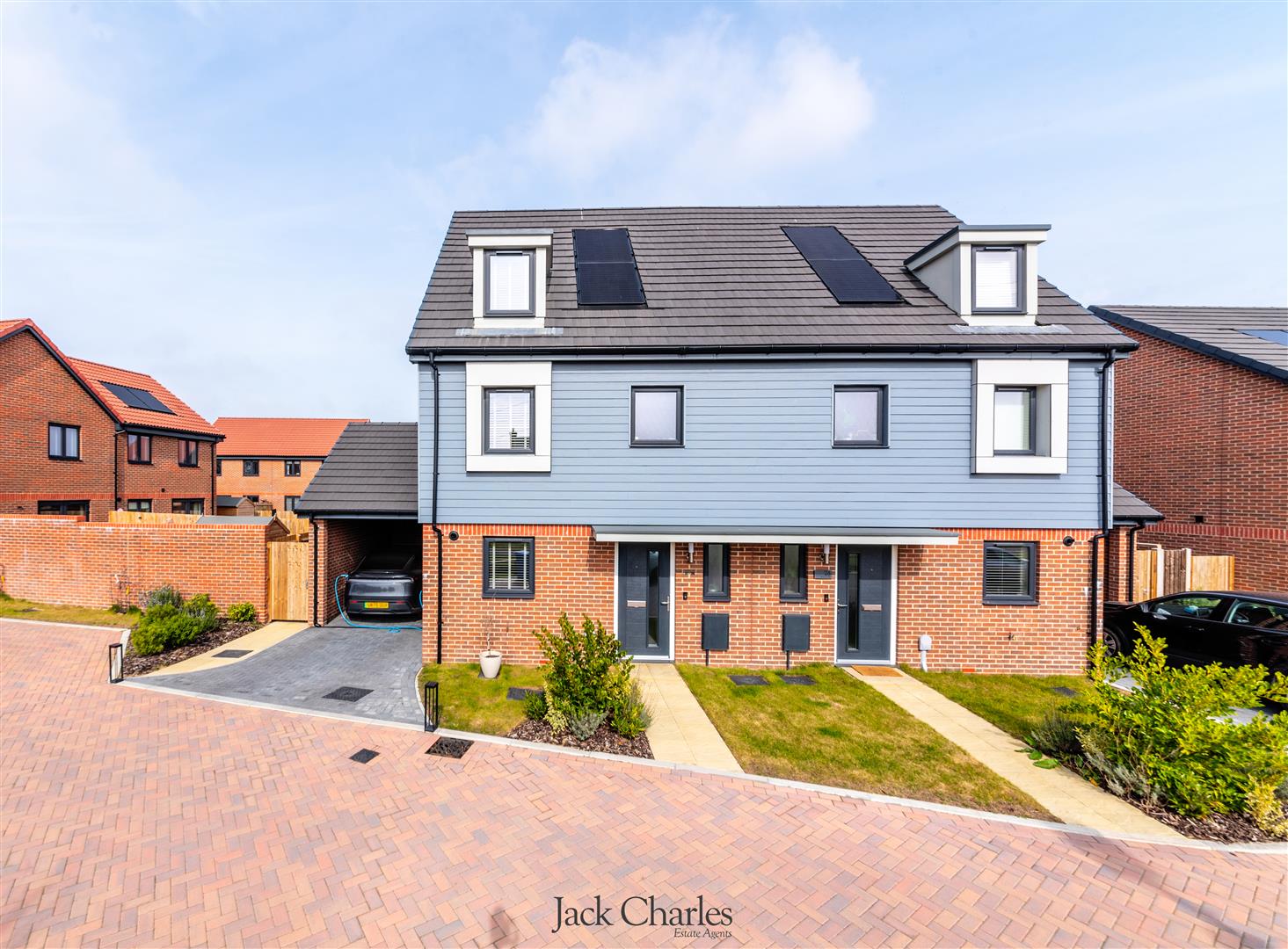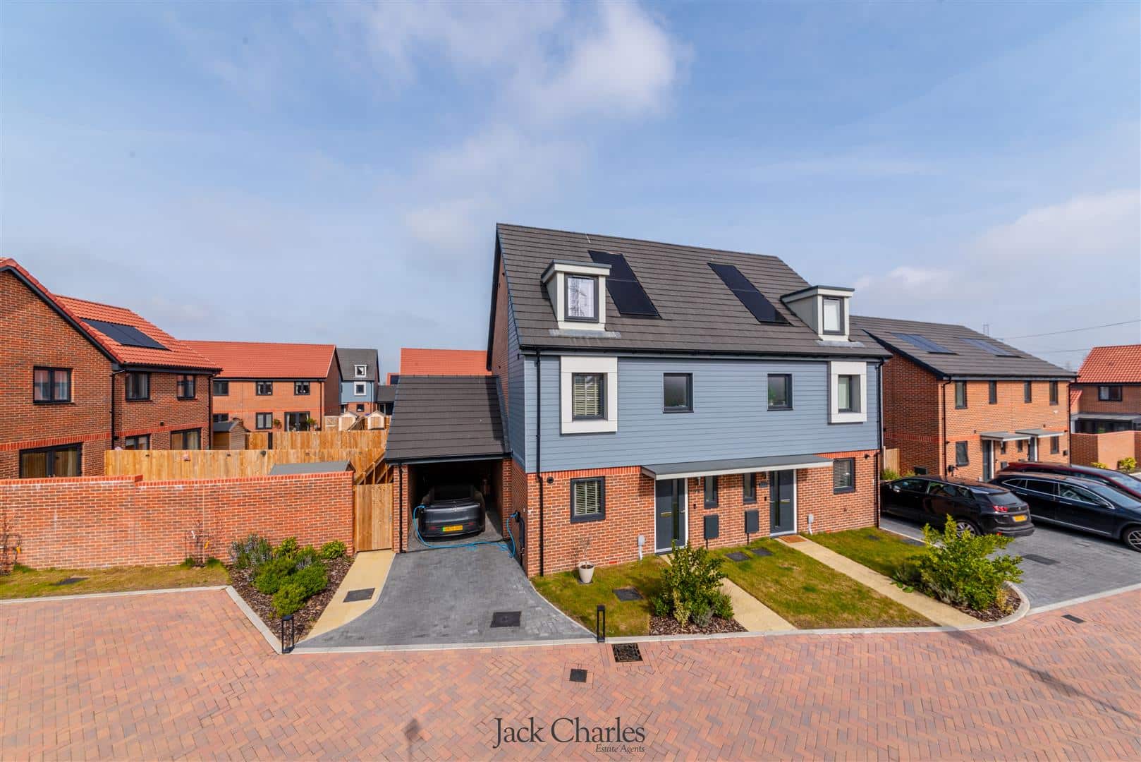 Externally, the rear garden is mainly laid to lawn with a patio area. The property also benefits from undercroft parking, providing sheltered and convenient off road parking, with an EV charger.