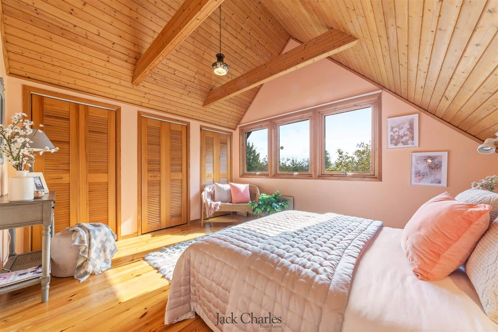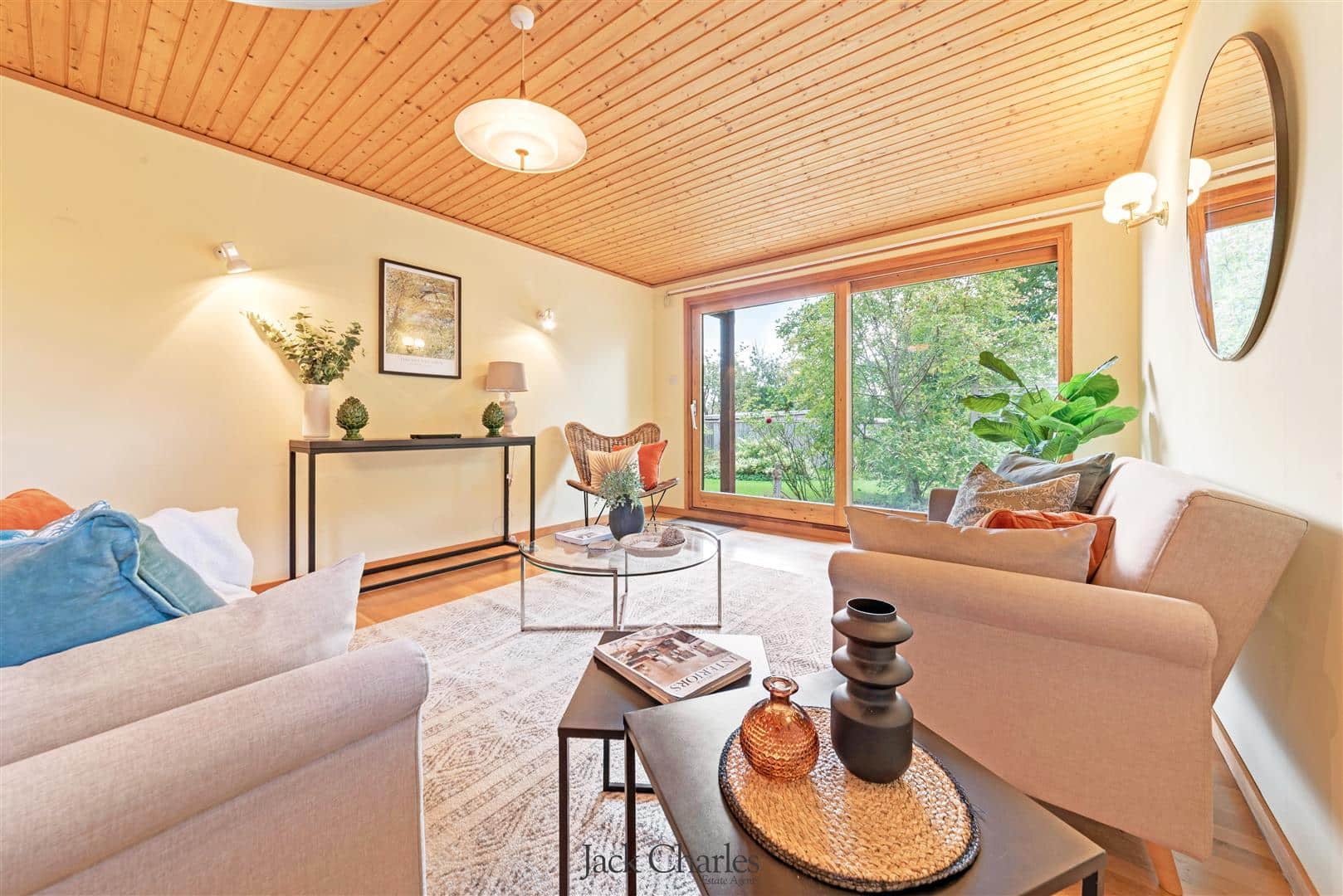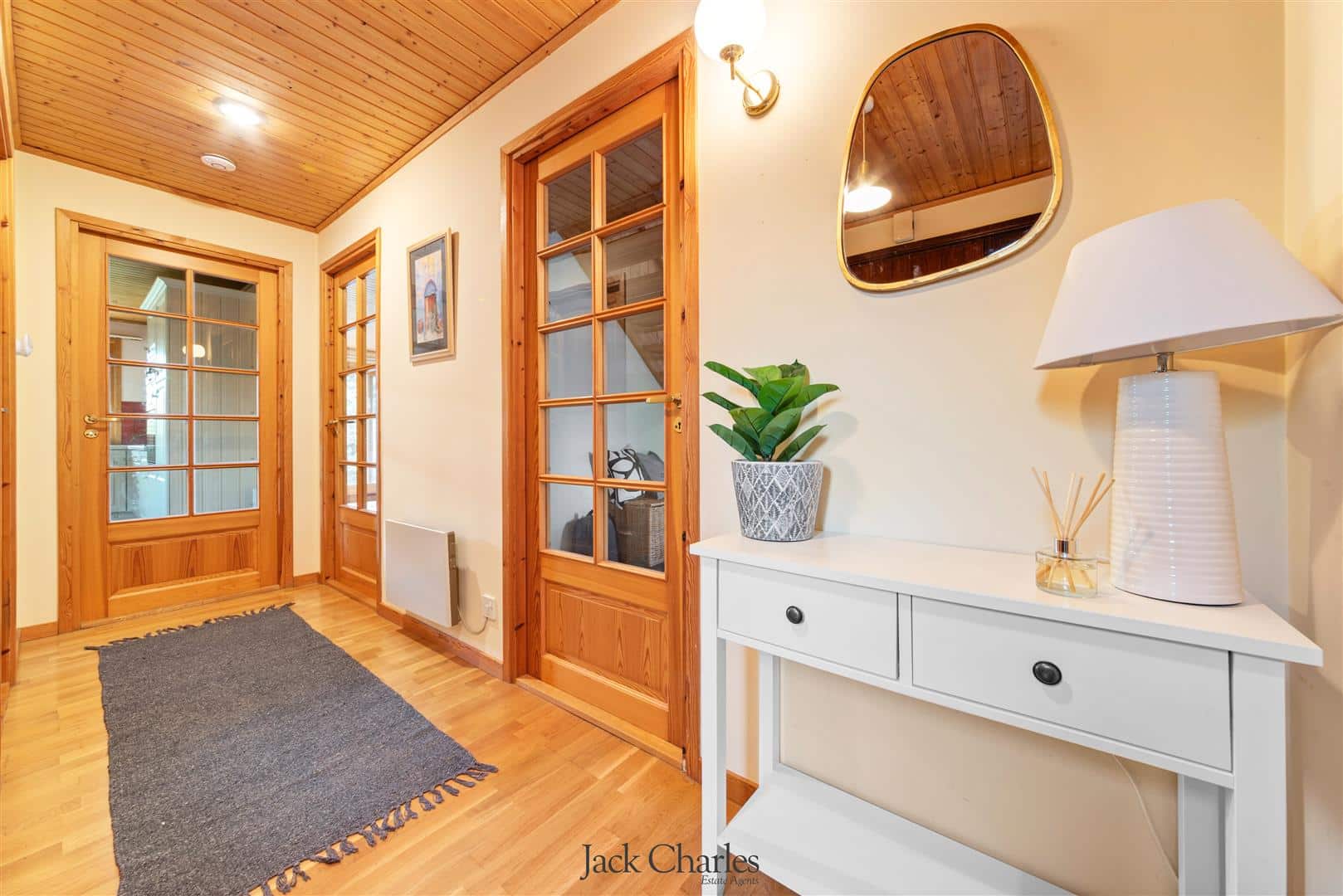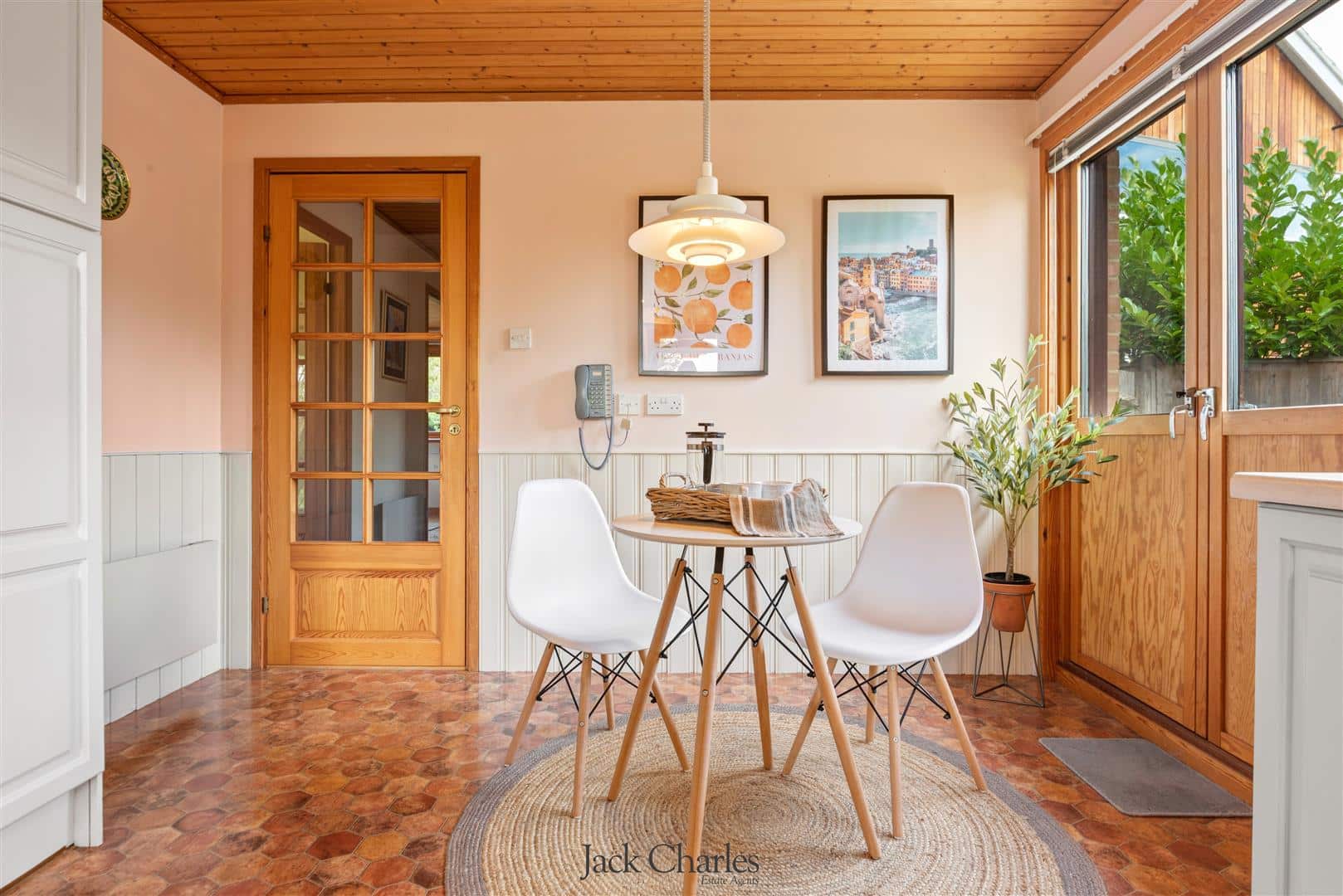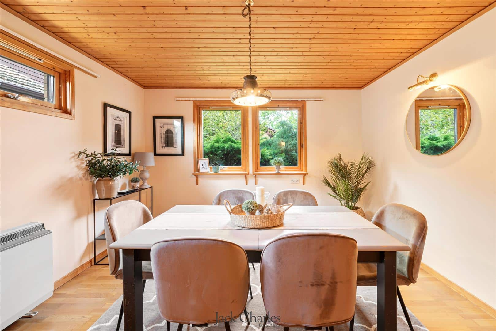 Jack Charles are delighted to offer for sale this wonderful unique detached home set back from the road, designed in the style of a 'Scandia-Hus. The property is beautifully presented and situated in a highly desirable location and is approached via a driveway, it is triple glazed throughout and you enter at the side into a spacious entrance hall with fitted storage and doors to the ground floor shower room, utility room, kitchen / breakfast room and two good sized reception rooms, the living room has sliding doors to the rear garden and the dining room is at the front of the house with stairs to the first floor. The kitchen is a generous size with space for a table and chairs and has a lovely outlook to the garden.
