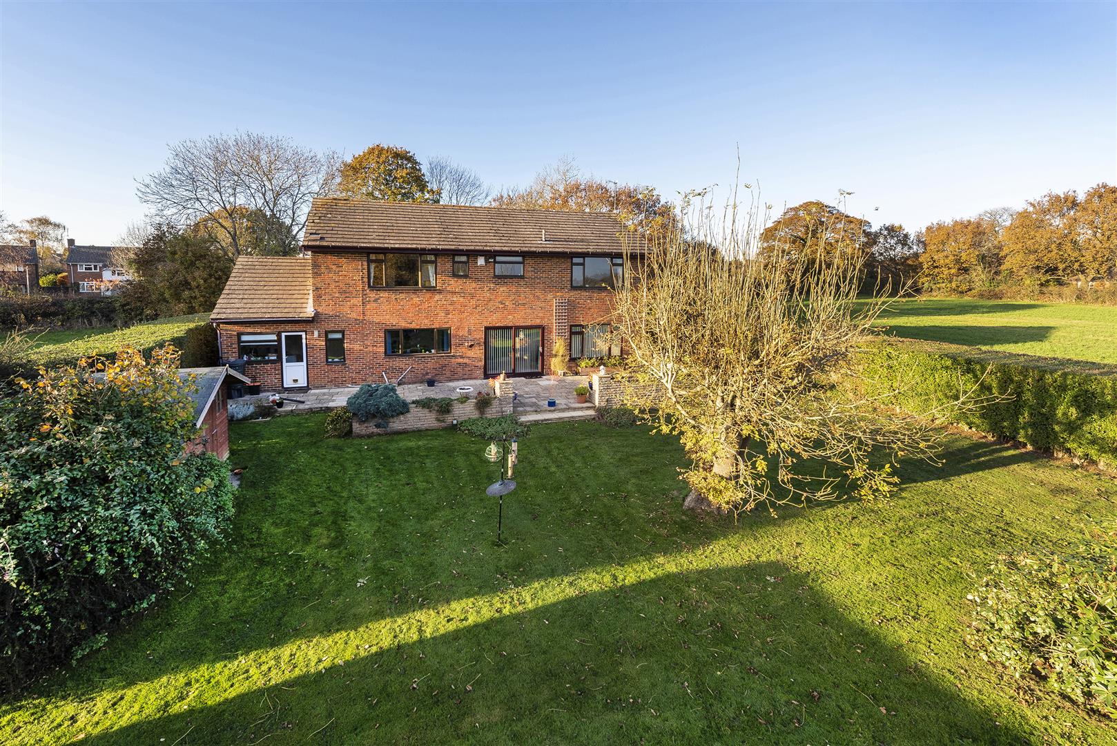 Externally and to the rear of the property there is a large patio area leading onto gardens that are predominantly laid to lawn, with mature shrubbery along the boundary along with impressive mature trees throughout the plot. There is a gated entrance to the side of the property.