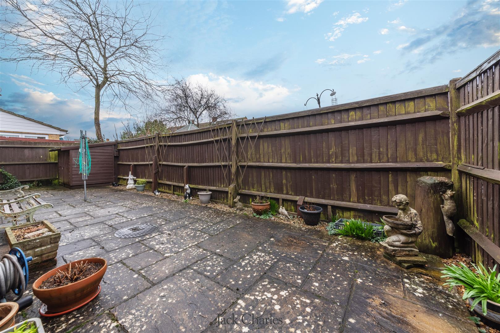 Externally, there is a front garden with driveway parking for at least three cars and access to the garage. Side access leads to a rear courtyard style garden with shed. The garage has light and power. Book a Viewing