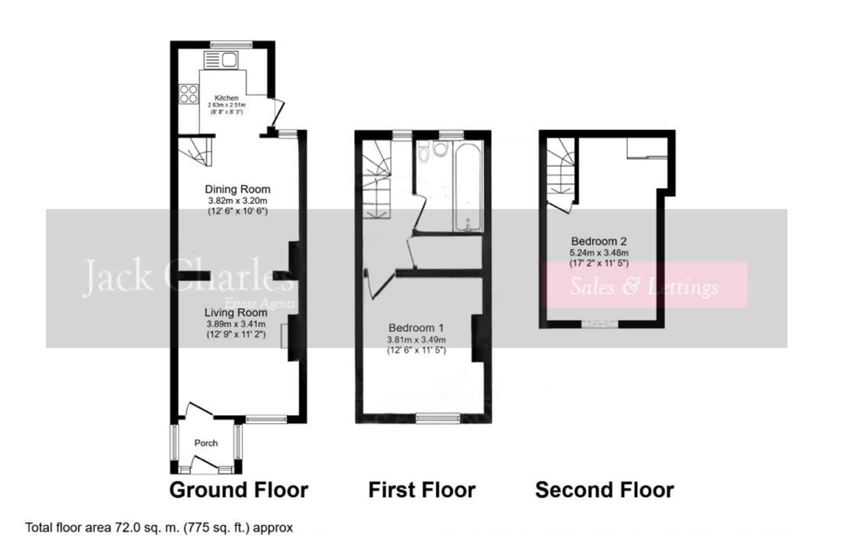 The property boasts two inviting bedrooms, one on each floor, each offering a peaceful retreat for rest and relaxation. The bathroom is a good size with a newly fitted suite.