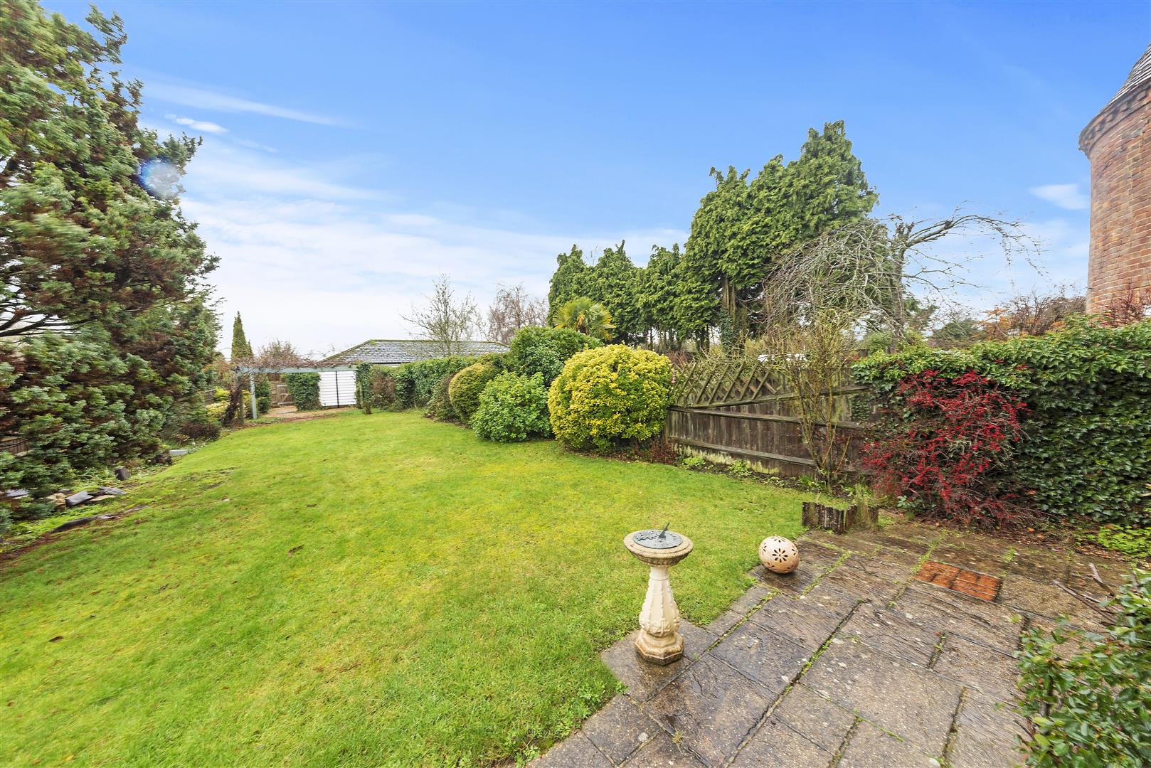 Outside, the rear garden enjoys a good sized paved and terraced seating area which takes in lovely views across the remainder of the garden. The garden itself is laid mainly to lawn and enhanced by attractive flower and shrub borders, providing a peaceful and private outdoor space.