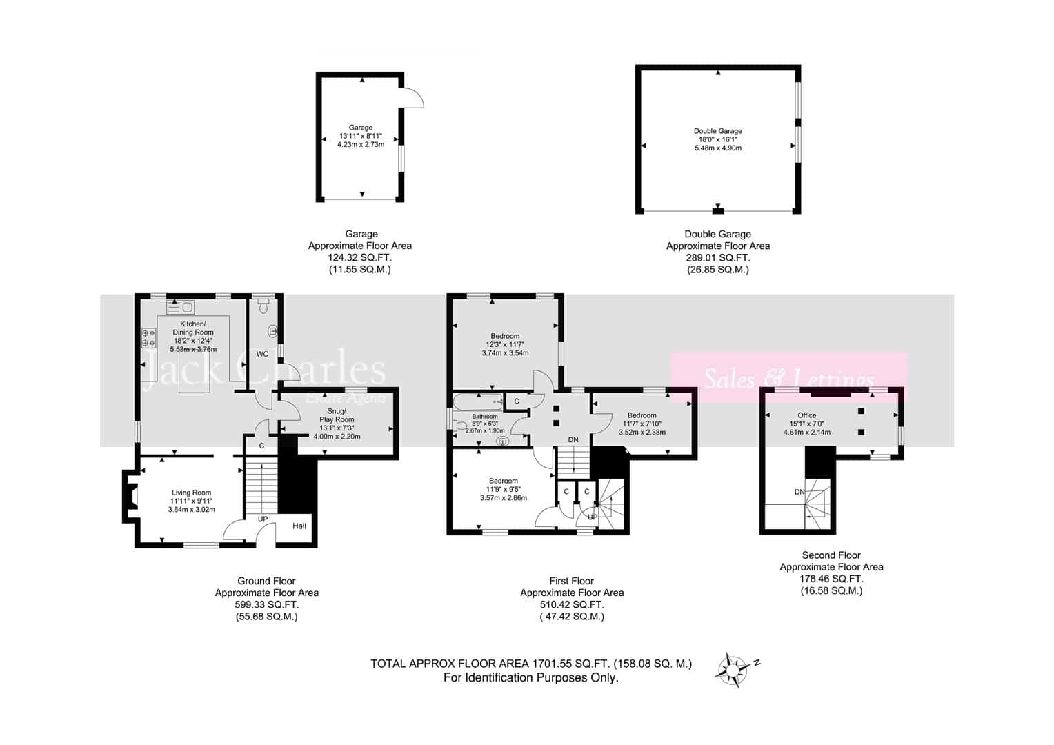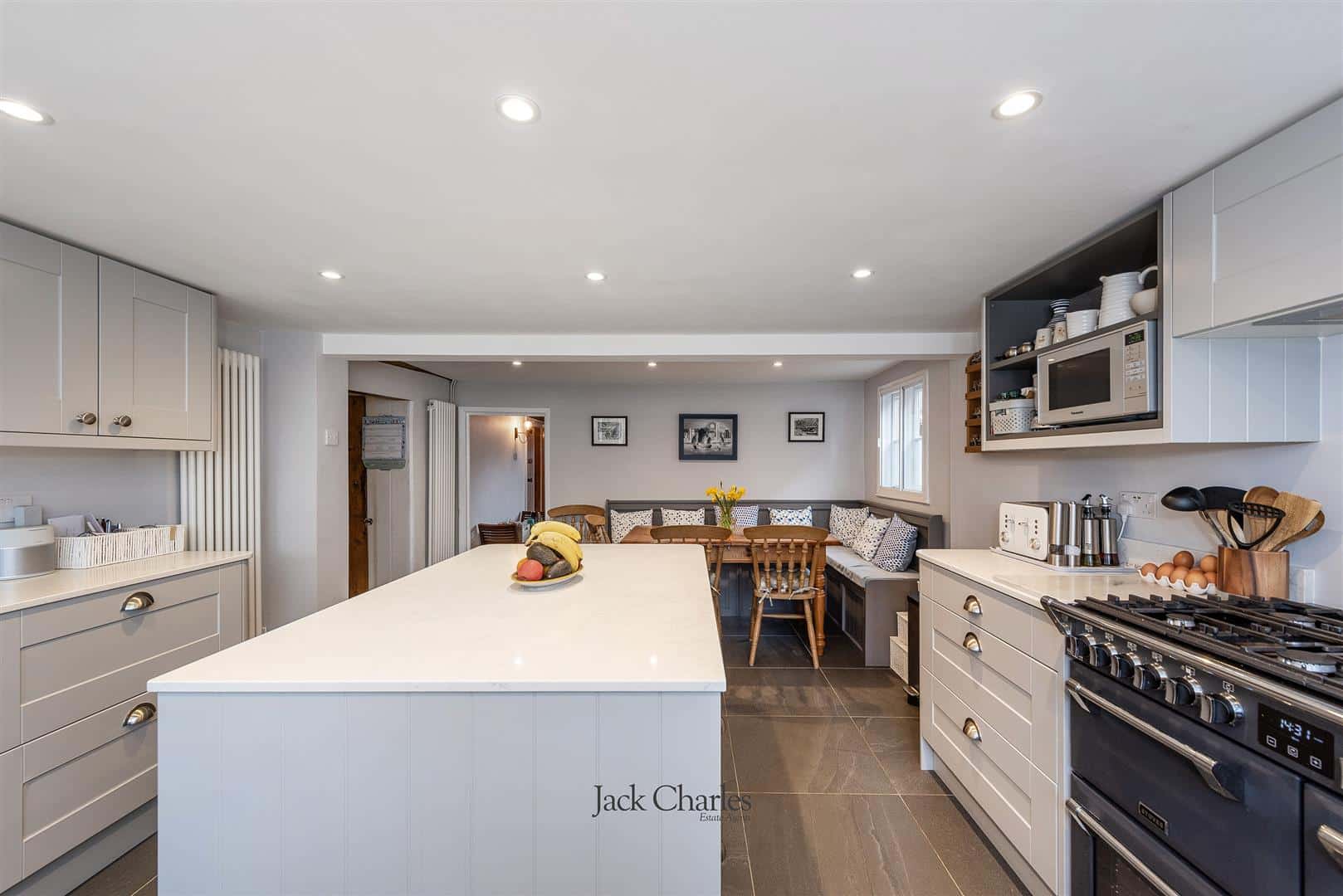 Jack Charles are delighted to offer this enchanting grade II listed three bedroom period cottage, perfectly placed on the picturesque edge of Hildenborough. Steeped in character, this home unfolds over three floors, welcoming you through a charming porch into a cozy lobby. A delightful sitting room awaits with an inviting inglenook fireplace and gives access to the kitchen dining room which is very much the heart of the home, featuring a central island, integrated appliances, and elegant tiled flooring. From the inner hallway, is a snug retreat, perfect for relaxing, a playroom or working, and a rear lobby that adds practicality whilst providing a door to outside. Upstairs, the landing has exposed timbers that lead you to 3 bedrooms and a charming bathroom. The second bedroom holds a secret with its cupboard leading to a delightful loft room, ideal for hobbies or quiet work. Outside is a quintessential cottage garden, a paved patio, and a detached garage. A shared drive at the side leads to a couple of other homes and a further private area enclosed by a five bar gate and as additional parking, double garage that has potential for replacing with a detached garage with room over making it a great space to rent out. This area also has a garden laid to lawn perfect for summer gatherings and provides a picturesque setting abutting a serene stream, offering a beautiful backdrop, making it a perfect countryside haven Viewings are recommended.