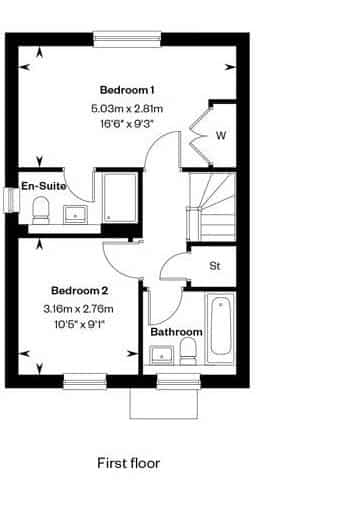 Upstairs, both bedrooms are well proportioned. The main bedroom extends across the width of the home and features an en-suite shower room and fitted wardrobe, while the second bedroom overlooks the front. A modern family bathroom completes the layout, accessed conveniently from the landing.