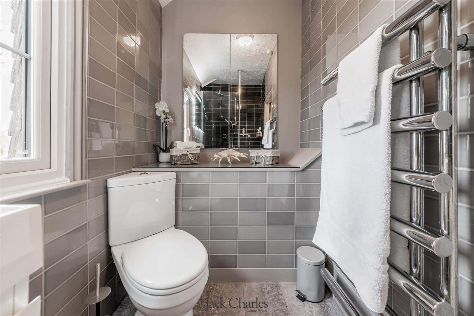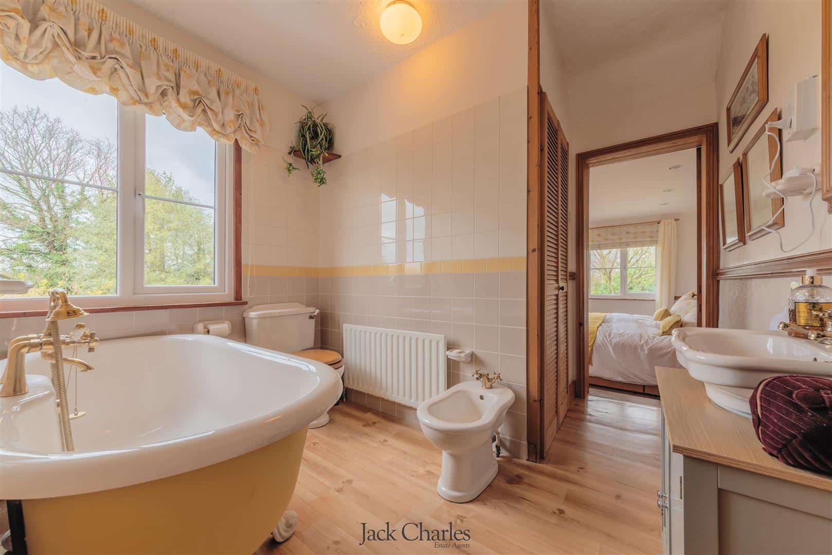 Upstairs, there are three bedrooms and a modern shower room. Bedroom one is accessed via an ensuite bathroom with a large walk in wardrobe. Subject to requirements, this space could be reconfigured and, with some modification, returned to an additional bedroom if desired. The principal bedroom enjoys a double aspect with stunning views, while the remaining bedrooms also benefit from attractive outlooks, with built in storage in one.