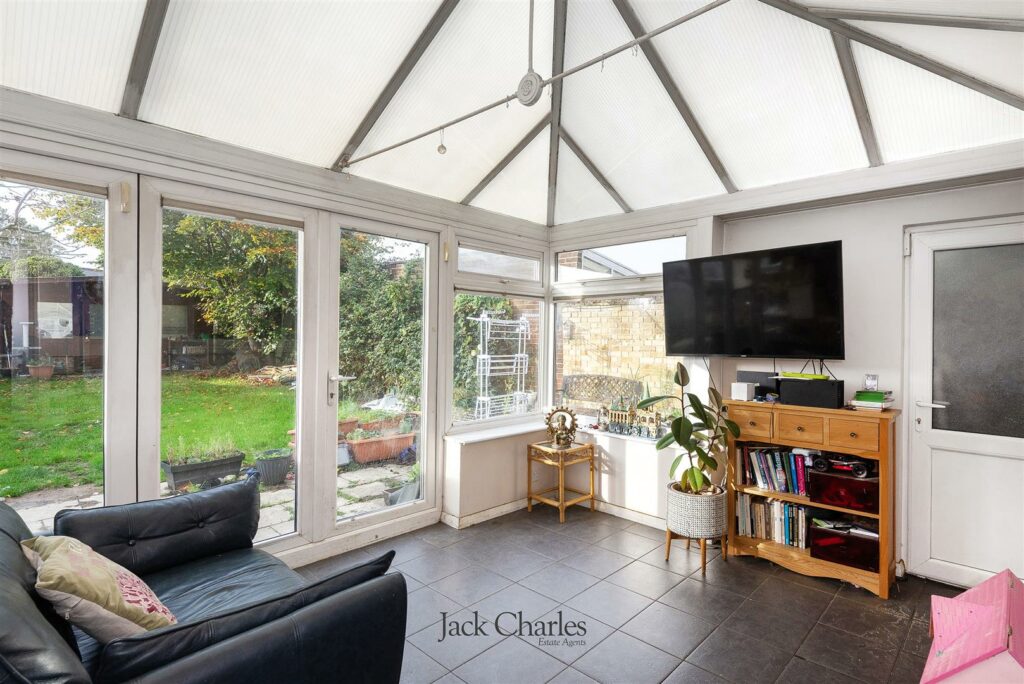 Outside to the rear is a good-sized garden, mainly laid to lawn with mature borders and a patio seating area adjoining the conservatory — perfect for entertaining and family living.