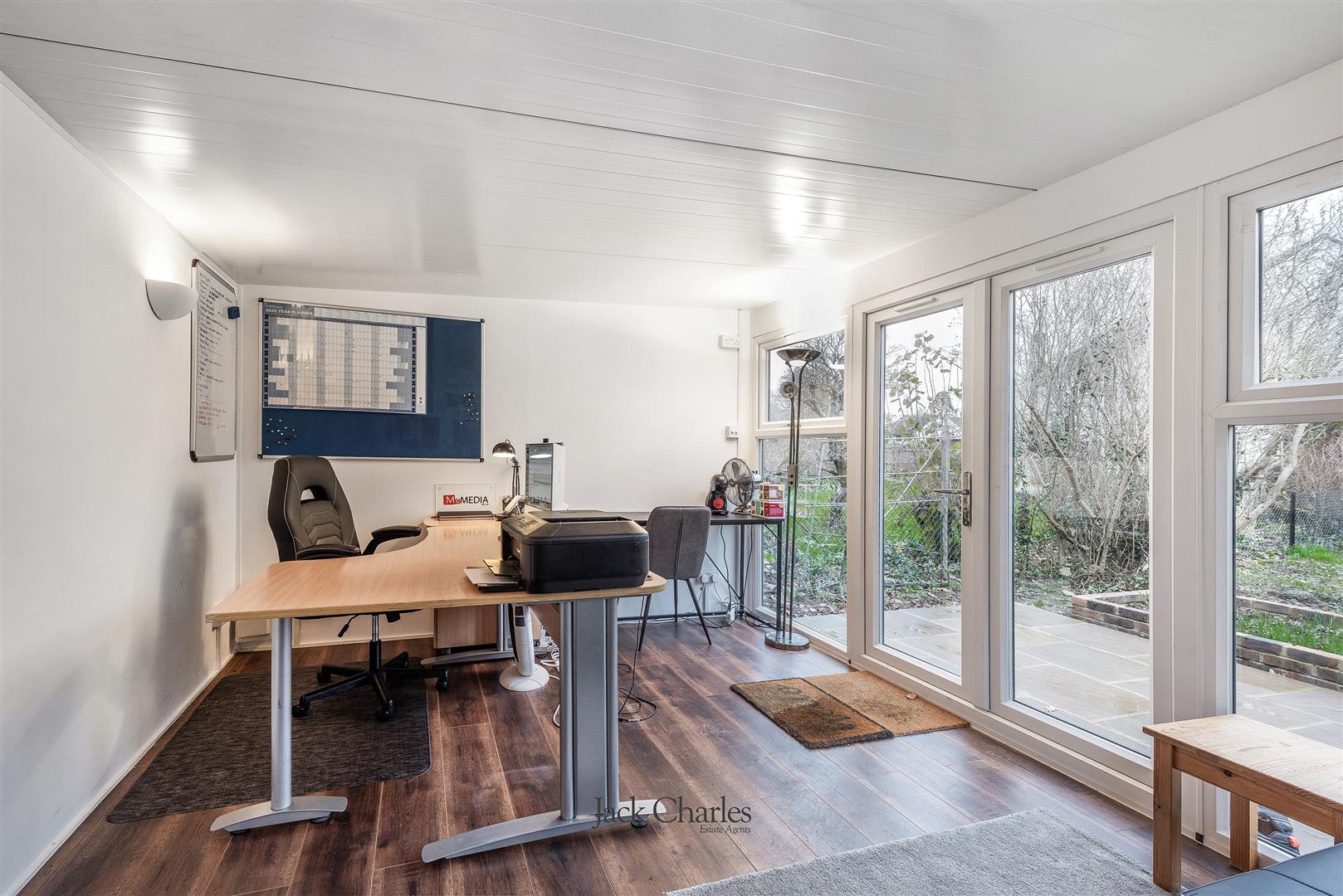 Outside, the garden is predominantly laid to lawn with a paved terrace to the rear of the house. It is enclosed by hedgerow and a path leads through to a substantial garden studio room, complete with Wi-Fi. There is a paved area surrounding the studio as well as a pathway and a gate giving access out to the rear path that leads to Stocks Green Primary School. The property also benefits from a detached garage and ample parking. Viewings are recommended.